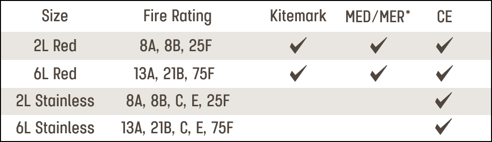 Jewels E-Series water mist can extinguish most classes of fire. Classes A, B, C, E, F